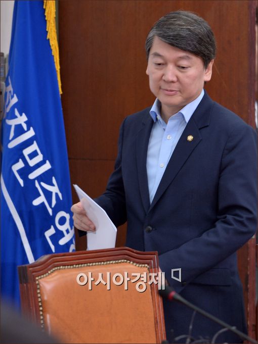 [아시아경제 윤동주 기자] 안철수 새정치민주연합 국민정보지키기위원장이 27일 서울 여의도 국회에서 긴급 기자회견을 갖기 위해 회견장으로 들어오고 있다.