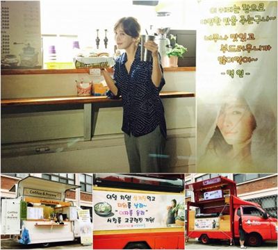 김정은의 팬클럽 '너구리마을'은 폭염 속에서도 MBC 주말 드라마 '여자를 울려' 촬영을 이어가고 있는 김정은과 현장 스태프들을 응원하기 위해 삼계탕과 커피차를 보내 왔다. 이에 김정은은 사진으로 팬들에게 감사의 마음을 전했다.