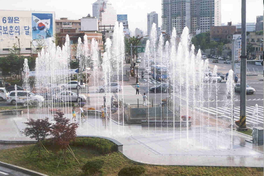 수경시설은 흔히 어린이들이 좋아하는 바닥분수를 비롯 벽천, 계류 및 연못 등 크게 3가지 형태이며 지역 내 총 15개소를 운영하고 있다.