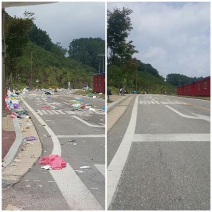 15일 '무한도전'의 공식 트위터에는 "무한도전 '영동고속도로가요제'가 시청자 여러분의 큰 관심 속에 막을 내렸습니다. 가요제 후 현장에 버려진 쓰레기는 관객 퇴장 직후부터 '무한도전'이 열심히 치우고 있었습니다"는 글과 함께 사진이 공개됐다.