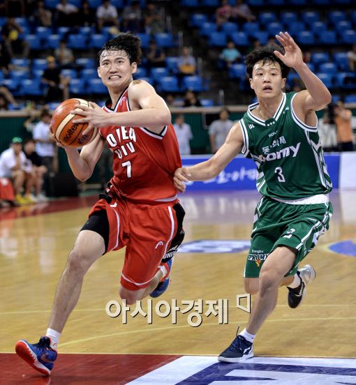[잠실=아시아경제 김현민 기자] 2015 KCC 프로-아마 최강전 원주 동부와 고려대학교의 경기가 17일 잠실학생체육관에서 열렸다.