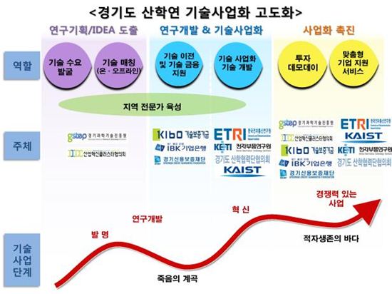 $pos="C";$title="경기도 기술사업화 고도화 추진";$txt="경기과학기술진흥원이 추진하는 경기도 산학연 기술사업화 고도화 사업 현황";$size="550,412,0";$no="2015082007465721469_1.jpg";@include $libDir . "/image_check.php";?>한편, 지난해 우리나라의 국내총생산(GDP) 대비 연구개발(R&D) 투자 비중은 4.15%로 세계 1위이지만, 기술 이전율은 27.1%, 제품화율은 9.1%로 기업의 사업화 성과는 미흡한 수준이다.