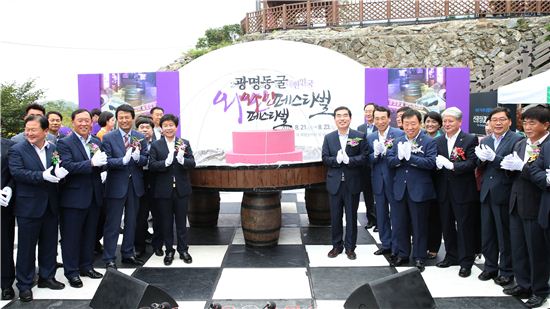 [아시아경제(광명)=이영규 기자] 국산 와인 100여종이 선보이는 '2015 광명동굴 대한민국 와인 페스티벌'이 21일 광명동굴 체험놀이터에서 양기대 광명시장과 전국 9개 지역 시장ㆍ군수 등 300여명이 참석한 가운데 3일간 일정으로 시작됐다.