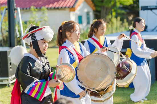 삼성그룹이 문화·예능 관련 대학생 동아리들로 구성한 '대학생 끼봉사단'이 경기 제부도 서신초 제부분교에서 첫번째 활동을 시작했다. 이화여대 풍물 동아리 '꾼'이 흥겨운 사물놀이 한마당을 펼치고 있다.