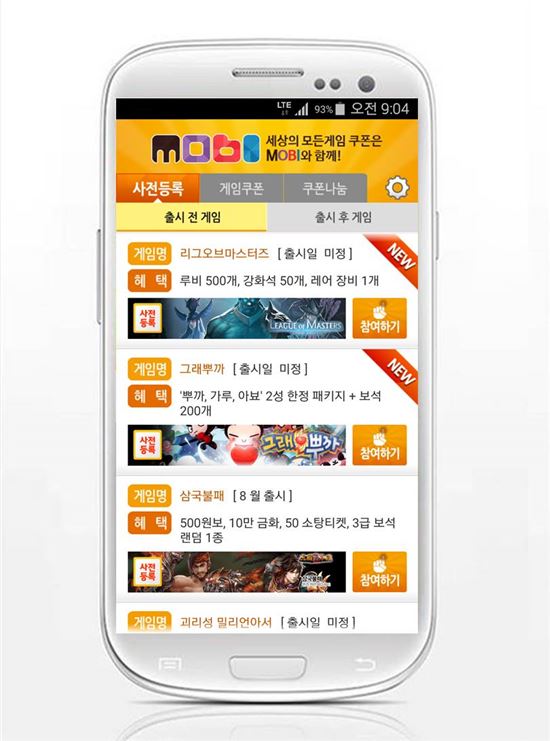 무료 쿠폰 어플 '모비', '리그오브마스터즈', '소오강호' 등 신작 게임 쿠폰 7종 추가