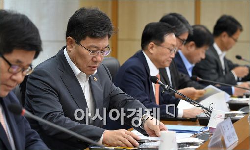 [아시아경제 윤동주 기자] 윤상직 산업통상자원부 장관이 7일 서울 중구 무역보험공사에서 열린 긴급수출점검회의에 참석, 모두 발언을 하고 있다.
