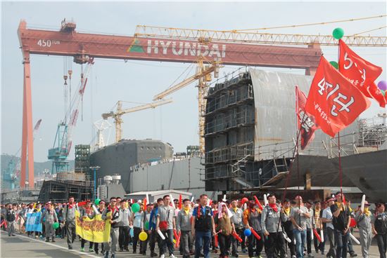 현대중공업 관계자는 "지난해 4차례 파업 시 150억원의 손실을 봤다"면서 "횟수로 따지면 올해 파업이 더 많은데 이렇게 되면 손실은 더 많아질 수 있다"고 말했다.