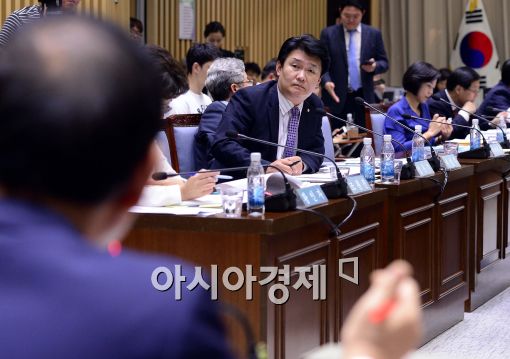 [아시아경제 최우창 기자] 박원순 서울시장이 17일 서울시청에서 열린 국회 안전행정위원회의 국정감사에 참석한 가운데 정용기 새누리당 의원이 박 시장의 아들 .