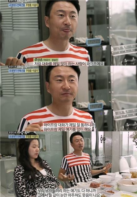 이날 주영훈은 "나랑 대화를 제일 많이 하는 사람은 아내(이윤미)다. 대화가 제일 잘 통하니까 이야기도 많이 한다. 밖에 있었던 이야기도 다 한다"고 말했다.
