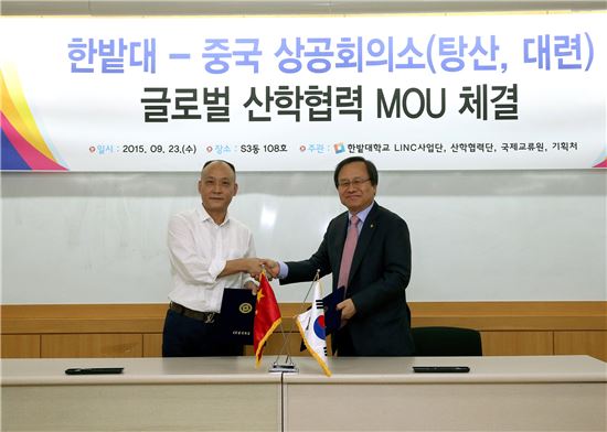 [아시아경제(대전) 정일웅 기자] 한밭대는 23일 교내 종합교육센터에서 중국 대련과 탕산 등지의 상공회의소와 ‘글로벌 산학협력 협약’을 체결했다.