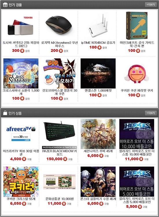 헝그리앱에서 진행하는 다양한 이벤트와 커뮤니티 활동을 하면 헝그리앱 내에서 현금처럼 쓸 수 있는 밥알 포인트를 획득할 수 있다. 획득한 밥알 포인트는 '헝그리앱 헝앱샵'에서 '구글플레이 기프트카드', '문화상품권', '리그오브레전드 RP'를 비롯해 각종 게임 아이템, 아프리카TV 퀵뷰, 롯데리아 버거 세트, 던킨도너츠 팩 등, 게임 및 실생활에 필요한 유용한 상품들을 구매할 수 있다.