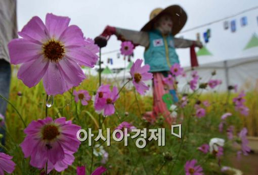 [아시아경제 백소아 기자] 1일 서울 광화문 시민마당에서 코스모스와 허수아비가 오랜만에 내리는 가을비를 머금고 있다.