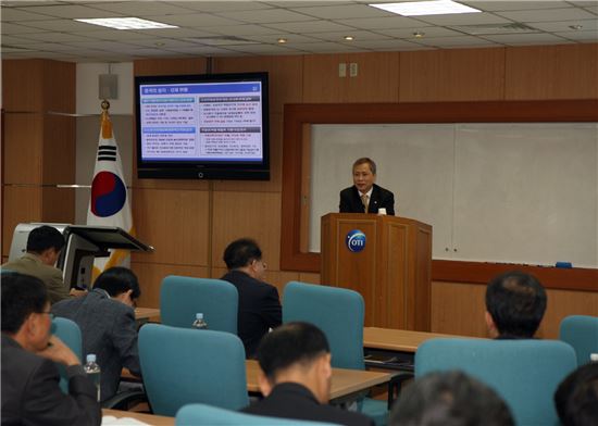 [아시아경제(대전) 정일웅 기자] 김상규 조달청장은 12일 경기도 과천시 소재 중앙공무원교육원에서 중앙부처 국장급 공무원과 공공기관 임원 등 60여명의 ‘고위정책과정’ 교육생들을 대상으로 ‘우리나라 경제여건과 공공조달의 역할’이라는 주제로 특강했다.