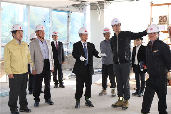 [아시아경제(대전) 정일웅 기자] 김상규 조달청장은 14일 강원도 원주 혁신도시 소재 ‘국민건강보험공단 본부 신사옥 건립공사’ 현장을 방문, 공사 진행상황을 점검하는 한편 현장 관계자들의 애로사항을 청취하는 시간을 가졌다.