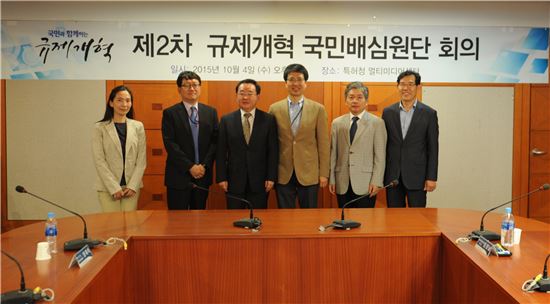 [아시아경제(대전) 정일웅 기자] 특허청은 14일 ‘2015년 제2차 규제개혁 국민배심원단 회의’를 개최하고 올해의 규제개혁 우수과제를 선정했다. 이준석 특허청 차장(왼쪽 세 번째)과 규제개혁 배심원단 위원들이 회의를 마치고 기념사진을 찍고 있다. 특허청 제공