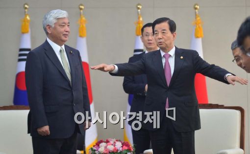 [아시아경제 백소아 기자] 한민구 국방부 장관(오른쪽)과 나카타니 겐 일본 방위상(왼쪽)이 20일 서울 용산구 국방부에서 회담을 하고 있다.