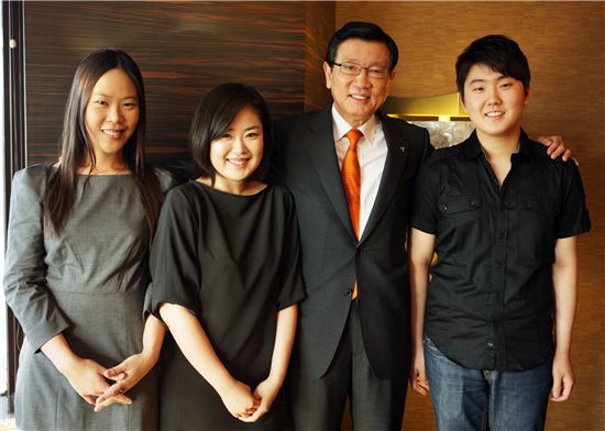 박삼구회장이 지난 2011년 차이콥스키 국제음악콩쿠르에서 입상한 연주자들을 격려하고있다.왼쪽부터 피아니스트 손열음, 바이올리니스트 이지혜, 박삼구회장, 피아니스트 조성진