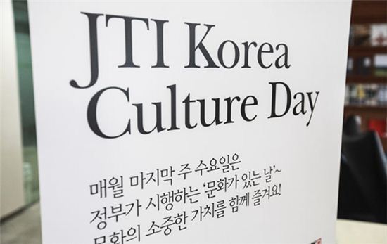 [아시아경제 이주현 기자]JTI코리아는 22일 ‘문화가 있는 날’을 맞아 사내 ‘JTI 컬처데이’ 캠페인을 실시한다고 밝혔다.
