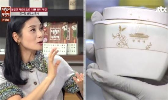 이날 방송에서 강수진의 냉장고를 살펴보던 MC 정형돈이 "국보급 발레리나는 국보급 발레리나네요"라고 말해 궁금증을 자아냈다. MC 김성주가 왜냐고 묻자 정형돈은 "청와대에서 그릇을…"이라며 청와대 로고가 그려진 그릇을 보여줬다.