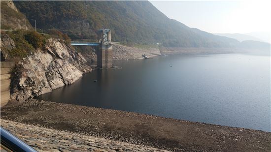 지난해부터 이어진 극심한 가뭄으로 평소 70m 정도를 유지했던 취수탑의 수위는 연일 낮아지고 있다. 이대로라면 내년 3월이면 댐의 물은 모두 고갈된다. 이를 막기 위해 케이워터는 물사용 20% 절감을 목표로 충남 서북부 8개 시군에 자율적으로 급수조정을 실시 중이다. 오는 10일부터는 더 강한 조치에 들어간다. 물 사용량 20%를 절감하지 못하는 지자체는 강제로 수돗물 공급을 5%가량 줄이기로 했다.