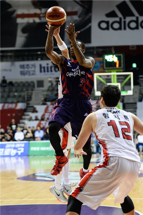 [아시아경제 김형민 기자] 농구에서 지역방어를 깨기 위해서는 공이 정확하고 최선의 장소로 잘 들어가야 한다. 그래야 그물망이 풀리게 된다. 울산 모비스 피버스의 지역방어에 전반전에 고전하던 고양 오리온 오리온스가 2쿼터 말미부터 숨통이 트이면서 승기를 잡았다. 그 중심에 조 잭슨(23·180.2cm)이 있었다.