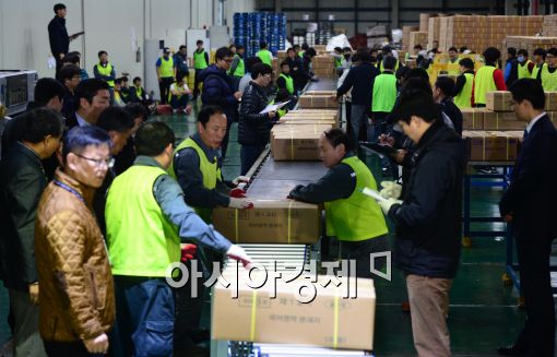 [세종=아시아경제 최우창 기자] 2016학년도 대학수학능력시험을 사흘 앞둔 9일 세종시 수능 시험문제지 배부처에서 관계자들이 문제지를 싣고 있다.