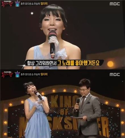 8일 오후 방송된 MBC '일밤-복면가왕' 3라운드 무대에서 박효신의 '눈의 꽃'을 열창한 '자유로 여신상'은 '호주의 슈스케'로 불리는 오디션 프로그램에서 당당히 우승을 차지한 임다미였다.