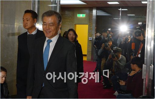 [아시아경제 윤동주 기자] 문재인 새정치민주연합 대표가 9일 국회 의장실에서 정의화 국회의장과 김무성 새누리당 대표와 선거구 획정 대해 논의하기 위해 들어.