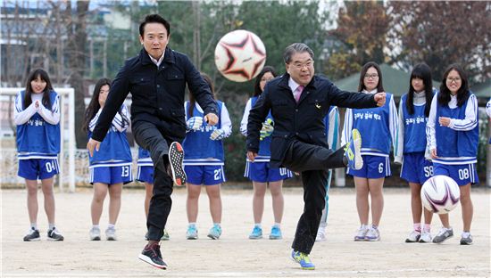 이날 남 지사와 이 교육감이 방문한 세류중학교는 1, 2학년 학생 200명 전원이 매일 아침 축구교실에 참여하고 있다.