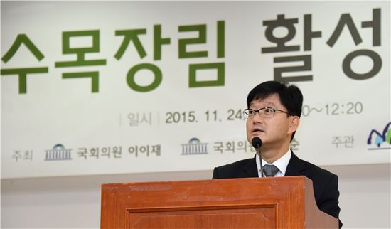 [아시아경제(대전) 정일웅 기자] 신원섭 산림청장이 24일 서울 영등포구 여의도동 국회의원회관에서 열린 ‘수목장림 활성화 심포지엄’에 참석해 인사말을 전하고 있다. 산림청 제공
