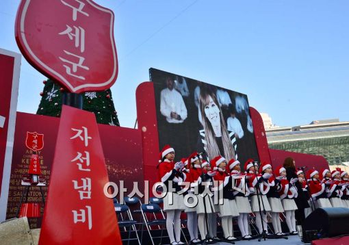 [아시아경제 백소아 기자] 1일 서울 중구 서울광장에서 열린 구세군자선냄비 시종식에서 역사어린이합창단이 축하공연을 하고 있다. 한국 구세군 자선냄비본부는 이날부터 70억원을 목표 모금액으로 전국 450여 곳에서 모금 활동을 시작한다.