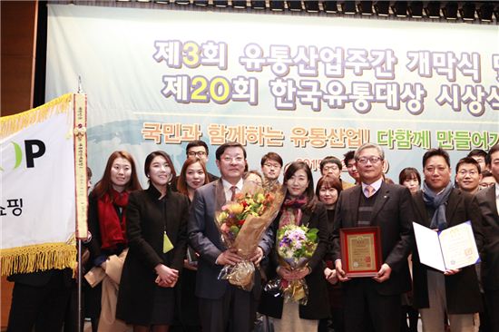 [아시아경제 이주현 기자]GS홈쇼핑이 1일 제20회 한국유통대상 시상식에서 글로벌 시장 개척과 중소기업 판로개척 등의 공로를 인정받아 최고상인 대통령상을 수상했다.