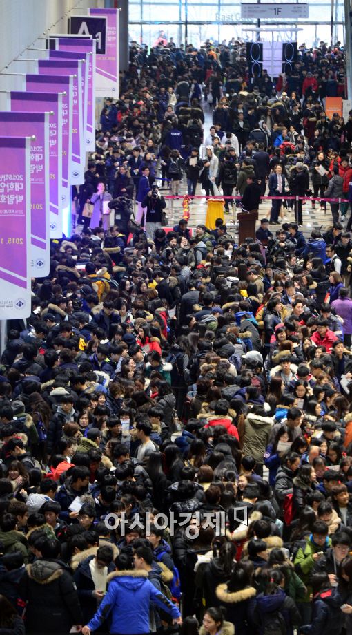 [아시아경제 최우창 기자] 3일 서울 강남구 코엑스홀에서 한국대학교육협의회(대교협) 주관으로 '2016학년도 정시 대학입학정보박람회'가 열린 가운데 행사장을 찾은 학부모와 수험들로 붐비고 있다.