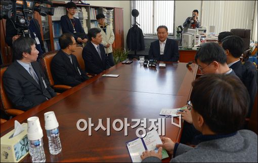[아시아경제 윤동주 기자] 이상민 국회 법사위원장이 8일 서울 여의도 국회에서 사법시험 폐지를 주장하는 법학전문대학원협의회 교수들과 면담을 갖고 있다.