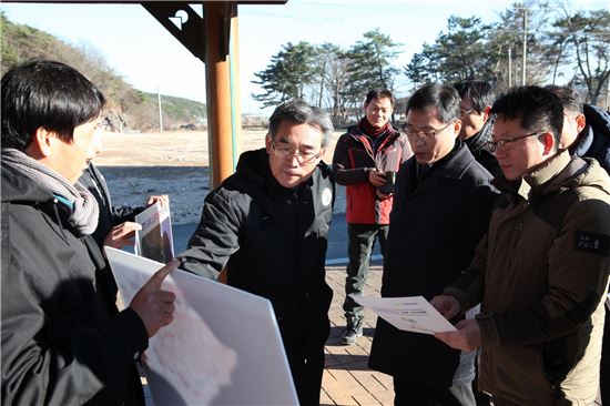 [아시아경제(대전) 정일웅 기자] 산림청 최병암 산림보호국장(오른쪽 두 번째)는 17일 포항과 영덕에 연접한 포항시 송라면 대전리를 방문, 현지 관계자들로부터 소나무재선충병 피해상황과 방제현황 등을 보고받는 시간을 가졌다. 산림청 제공