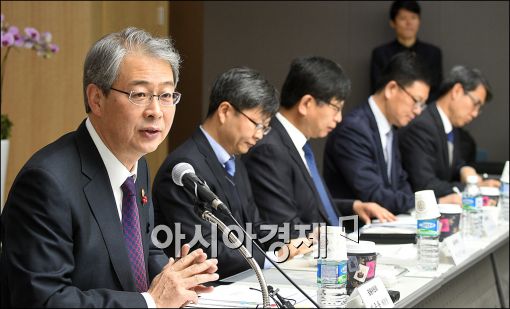[아시아경제 윤동주 기자] 임종룡 금융위원회 위원장이 18일 서울 여의도 한국예탁결제원에서 열린 '크라우드 펀딩 업계 관계자들과의 조찬간담회'에 참석, 모두 발언을 하고 있다.