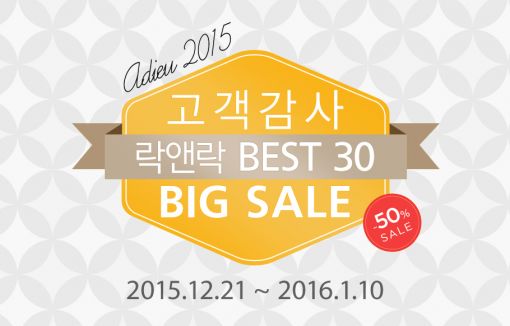 이달 21일부터 2016년 1월 10일까지 3주간 진행되는 이번 행사에서는 2015년 락앤락몰에서 가장 사랑받았던 Best 30 제품들을 선보인다. 락앤락 오븐글라스 햇쌀밥용기를 비롯해 밀폐용기, 프라이팬, 텀블러, 보온도시락 등 락앤락의 베스트셀러 제품들이 총 집합, 최대 50%까지 할인된 특별한 가격으로 제공된다.