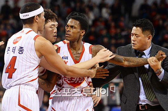 오리온 조잭슨, 김민수에 주먹 뻗어…살벌한 분위기 속 퇴장