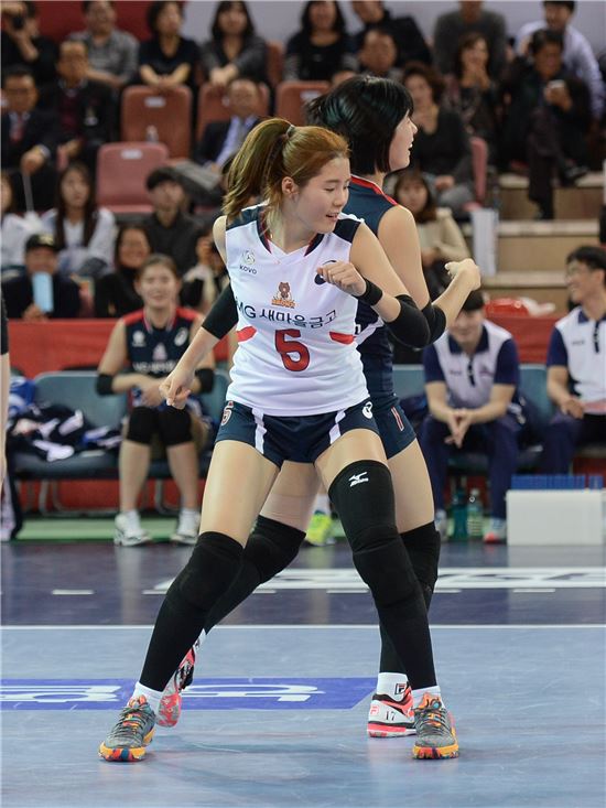 자매의 경쟁은 경기에 그치지 않는다. 천안 유관순체육관에서 지난 25일 열린 V리그 올스타전에서는 '끼'로 충돌했다. 둘은 득점하거나 공격이 성공할 때마다 춤 세리머니로 팬들을 사로잡았다.