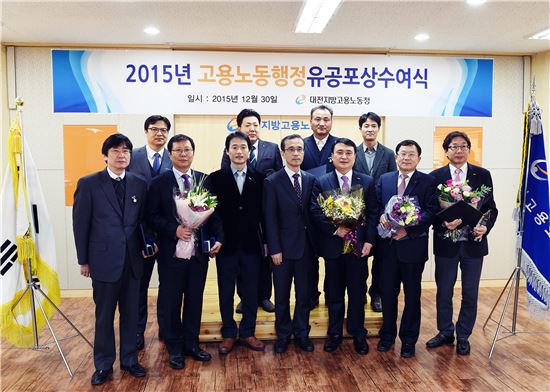 [아시아경제(대전) 정일웅 기자] 한남대는 ‘2015년 일자리창출 유공 정부포상’에서 단체부문 국무총리 표창을 받았다고 31일 밝혔다. 대학은 ‘한남 커리어 내비게이션 시스템’으로 재학생들의 진로 및 취업준비 과정을 길라잡이 함으로써 일자리 제도 개선에 기여한 공로를 인정받았다. 대학 관계자들이 시상식을 마치고 기념사진을 찍고 있다. 한남대 제공