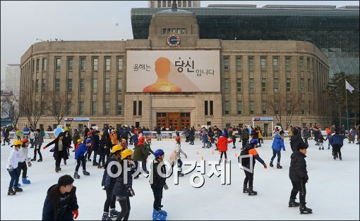 [아시아경제 윤동주 기자] 새해 첫 연휴 마지막 날인 3일 서울광장 스케이트장을 찾은 시민들이 스케이트를 즐기고 있다.