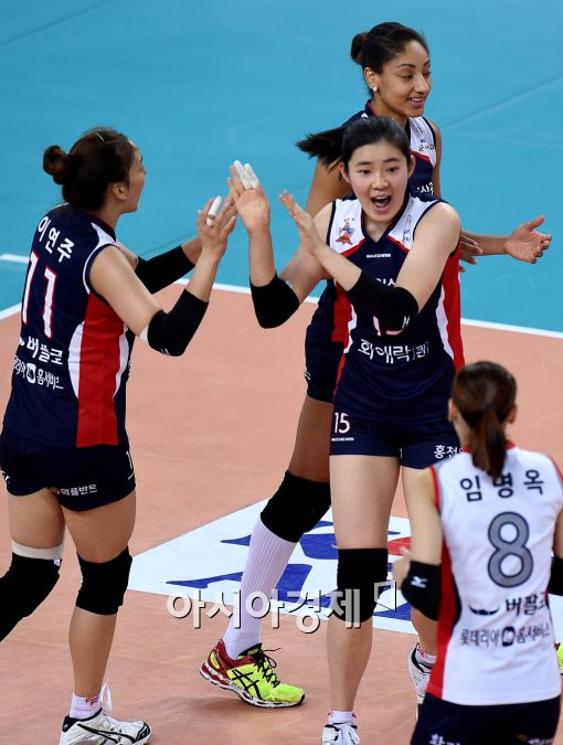 인삼공사는 28일 김천체육관에서 열린 ‘NH농협 2015∼2016 V리그’ 여자부 도로공사와의 원정경기에서 23점을 기록한 헤일리와 7블로킹을 기록한 문명화의 활약을 앞세워 3-0(25-14 25-22 25-23) 완승을 챙겼다. 문명화는 1세트에만 블로킹 5개로 5점을 올리는 기염을 토했다.