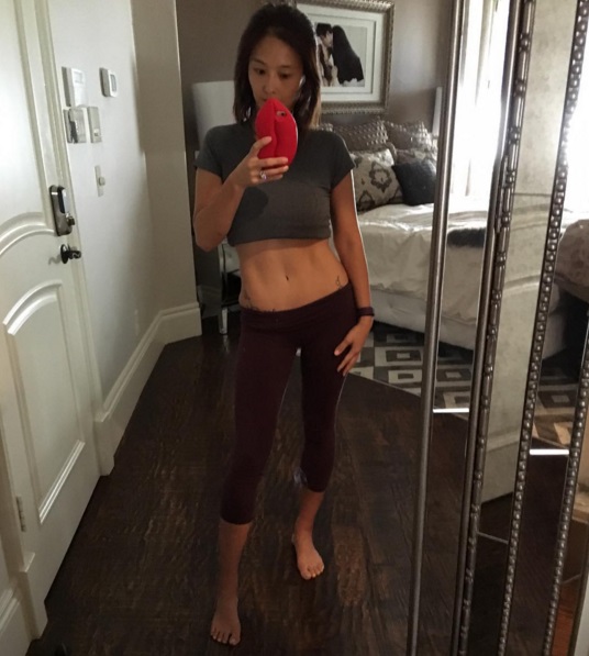 사진 속 하원미는 평소 운동으로 단련된 일자 복근을 선보이며 남다른 몸매를 과시하고 있다.