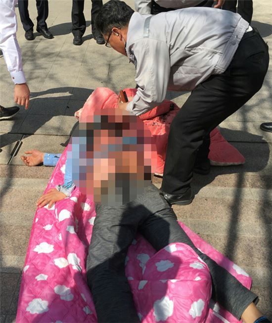 '박원순 사퇴'주장, 서울시청 정문앞 40대 분신…"생명엔 지장 없어"