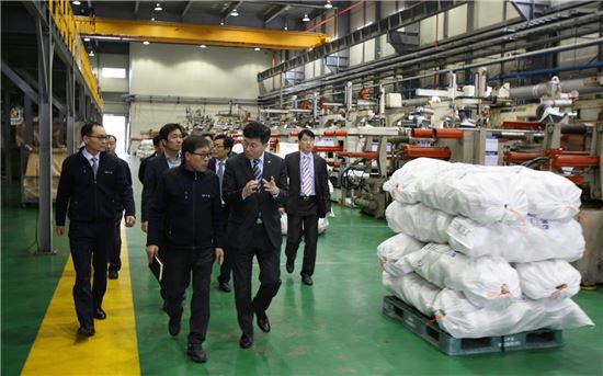 [아시아경제(대전) 정일웅 기자] 정양호 조달청장은 6일 경남 김해시 소재 우수조달물품 제조업체 두리화학㈜를 방문, 기업 관계자들로부터 애로사항을 청취하는 등 산업현장에서 소통하는 시간을 가졌다. 두리화학은 상하수도용 관과 이음관 등을 제조한다. 우수조달기업 지정은 지난 2014년 이뤄졌다. 정 청장(앞줄 오른쪽 첫 번째)이 기업관계자들과 현장을 둘러보며 대화 나누고 있다. 조달청 제공
