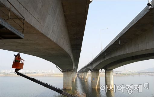 [아시아경제 윤동주 기자] 황교안 국무총리가 8일 서울 강동구 강일동 강동대교 남단에서 국가 안전대진단 일환으로 교량대교 현장점검을 하고 있다.