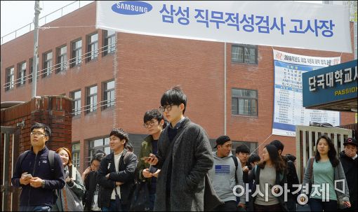 [아시아경제 윤동주 기자] 17일 서울 강남구 단대부속고등학교에서 실시된 삼성그룹 직무적성검사(GSAT)를 마친 응시생들이 고사장을 나오고 있다.