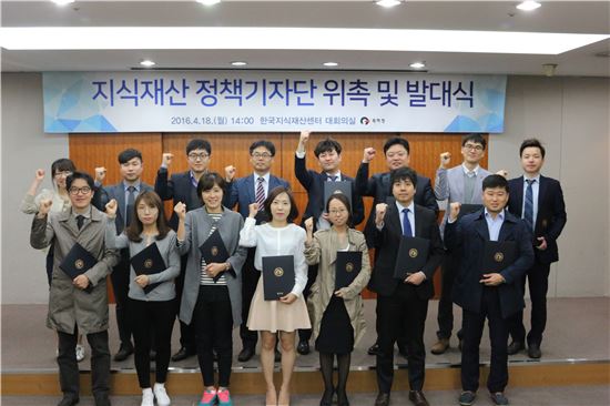 [아시아경제(대전) 정일웅 기자] 특허청은 18일 서울 강남구 테헤란로 소재 한국지식재산센터에서 ‘지식재산 정책기자단’ 발대식을 가졌다. 정책기자단은 향후 발명특허 뉴스와 지식재산 정책을 홍보, 정부와 국민 간 소통을 매개하는 역할을 자임할 예정이다. 정책기자단이 발대식을 마치고 파이팅을 외치며 기념사진을 찍고 있다. 특허청 제공