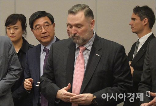 [아시아경제 윤동주 기자] 이기권 고용노동부 장관이 20일 서울 마포구 가든호텔에서 열린 '외투기업 CEO 조찬간담회'에 참석, 참석자들과 인사를 나누고 있다.