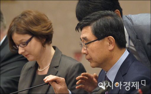 [아시아경제 윤동주 기자] 이기권 고용노동부 장관이 20일 서울 마포구 가든호텔에서 열린 '외투기업 CEO 조찬간담회'에 참석, 모두발언을 하고 있다.